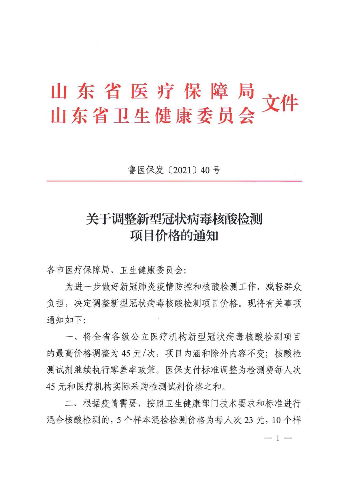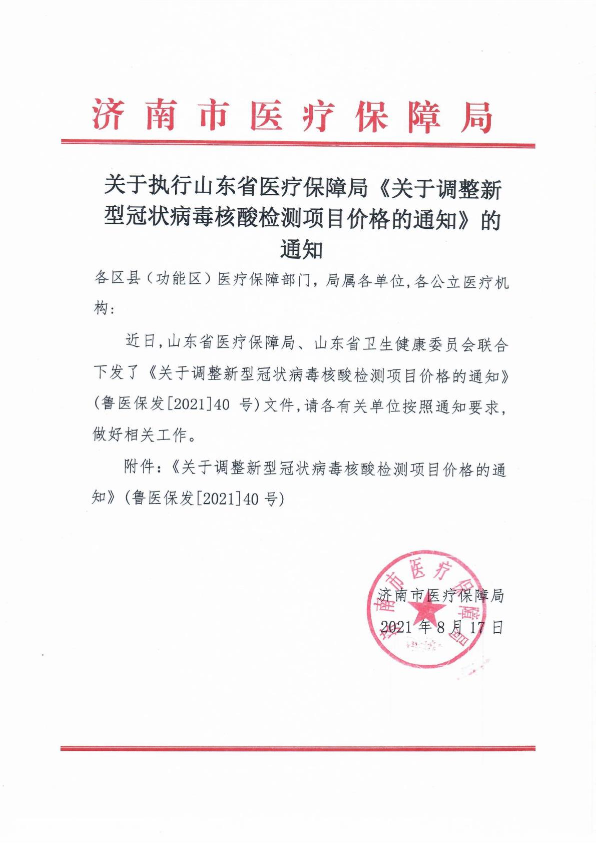 執行省2021 40 新(xīn)冠核酸檢測價格的 通知