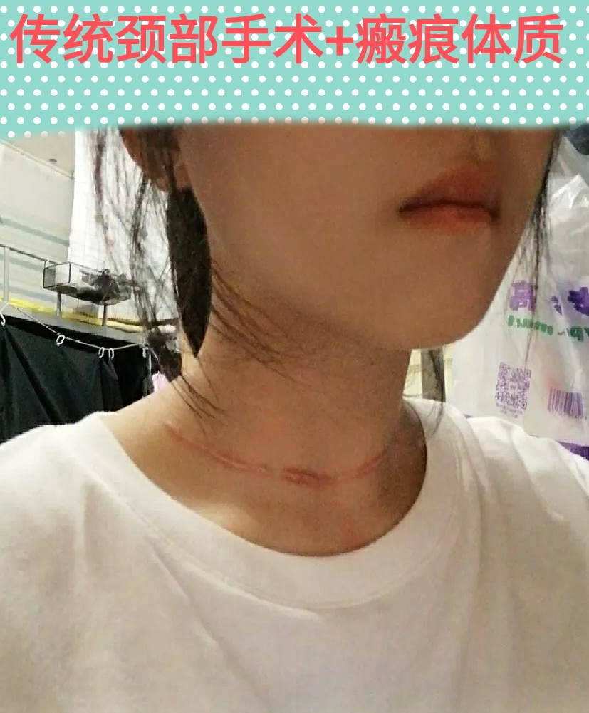 傳統的甲狀腺手術會在頸部留下(xià)長約5-10厘米的手術疤痕。疤痕體(tǐ)質的患者更是雪上(shàng)加霜。如(rú)下(xià)圖