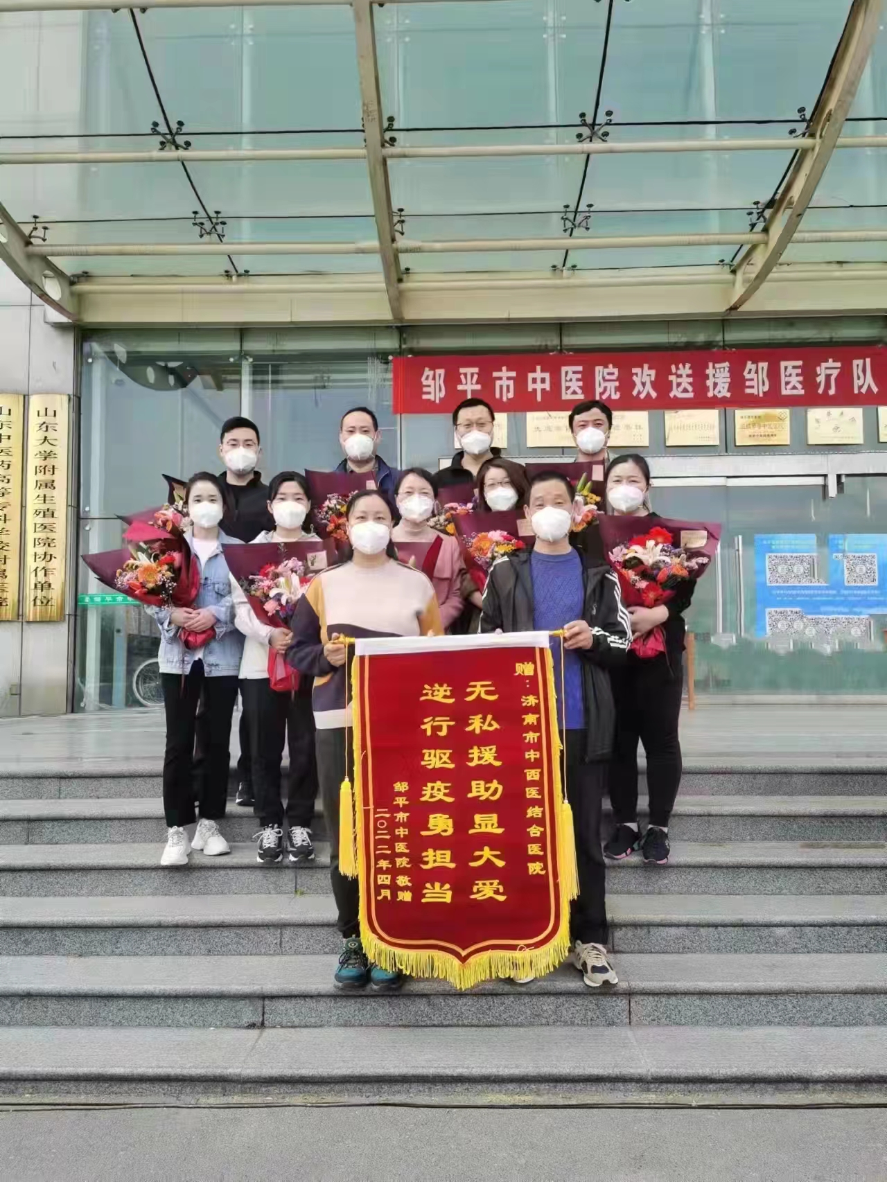 “豈曰無衣?與子(zǐ)同袍”,受山東省、濟南(nán)市(shì)衛建委委派的濟南(nán)市(shì)三十二名醫(yī)務(wù)人(rén)員(yuán)于當日上(shàng)午集結,下(xià)午即奔赴鄒平,其中包括我們濟南(nán)市(shì)中西(xī)醫(yī)結合醫(yī)院醫(yī)護人(rén)員(yuán)11名。