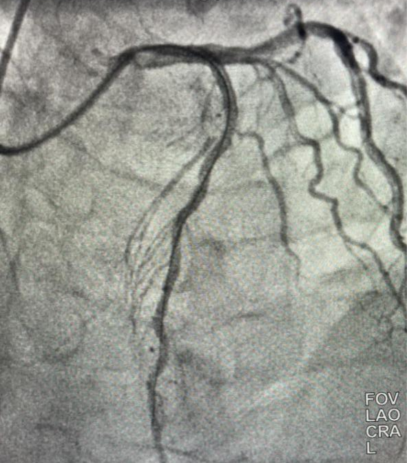 進入導管室後,立即開始消毒、鋪單、局麻、穿刺等操作(zuò),僅6分(fēn)鍾即完成冠脈造影,11分(fēn)鍾即恢複閉塞段血流,術中患者再次出現(xiàn)室顫,搶救成功,45分(fēn)鍾完成全部手術,術後患者生(shēng)命體(tǐ)征平穩,入重症監護室治療,2天後轉入普通病房(fáng),病情好(hǎo)(hǎo)轉後出院。經1個(gè)月(yuè)(yuè)随訪患者心髒功能(néng)等各項指标恢複良好(hǎo)(hǎo)。